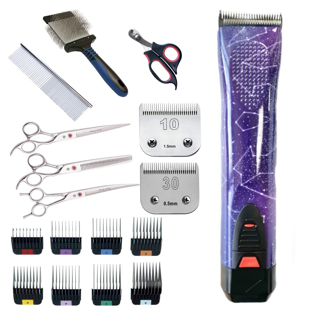 Detta startpaket med grundläggande hundvårdsutrustning för studenter består av viktiga delar av hundvårdsutrustning som har valts ut speciellt för att möta behoven hos alla nya hundfrisörer!